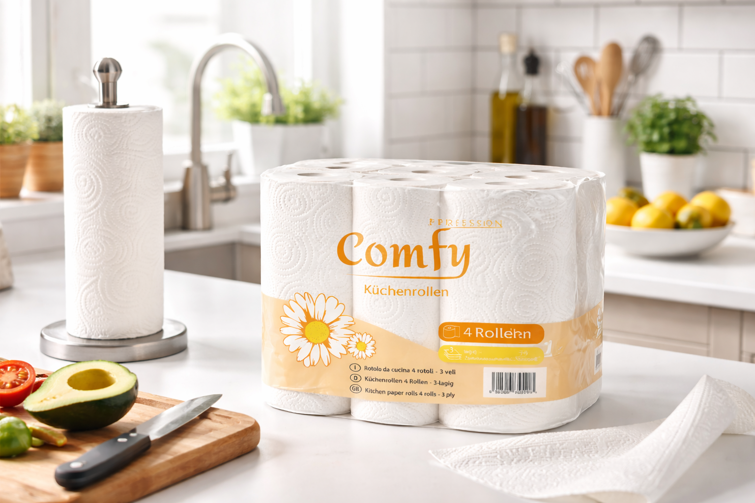 Comfy Küchenrollen 32 Rollen – 3-lagig | Saugstark & Reißfest (8×4)