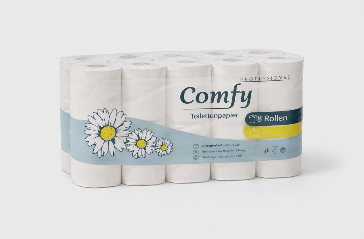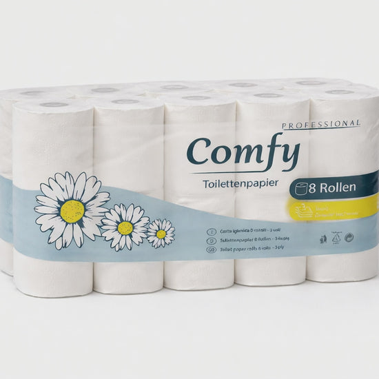 Comfy Toilettenpapier 64 Rollen – 3-lagig | 8×8 Pack | Hochweiß & Saugstark