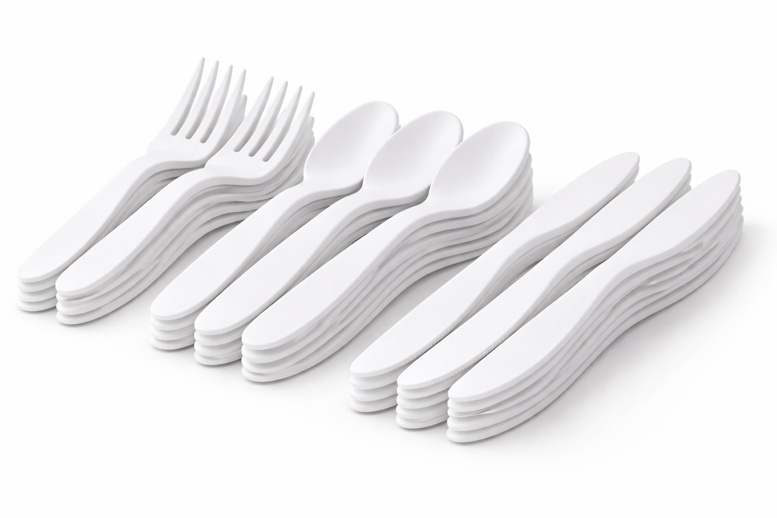 Plastikbesteck Weiß – Messer, Gabel, Löffel | Einweg-Set für Catering & Events